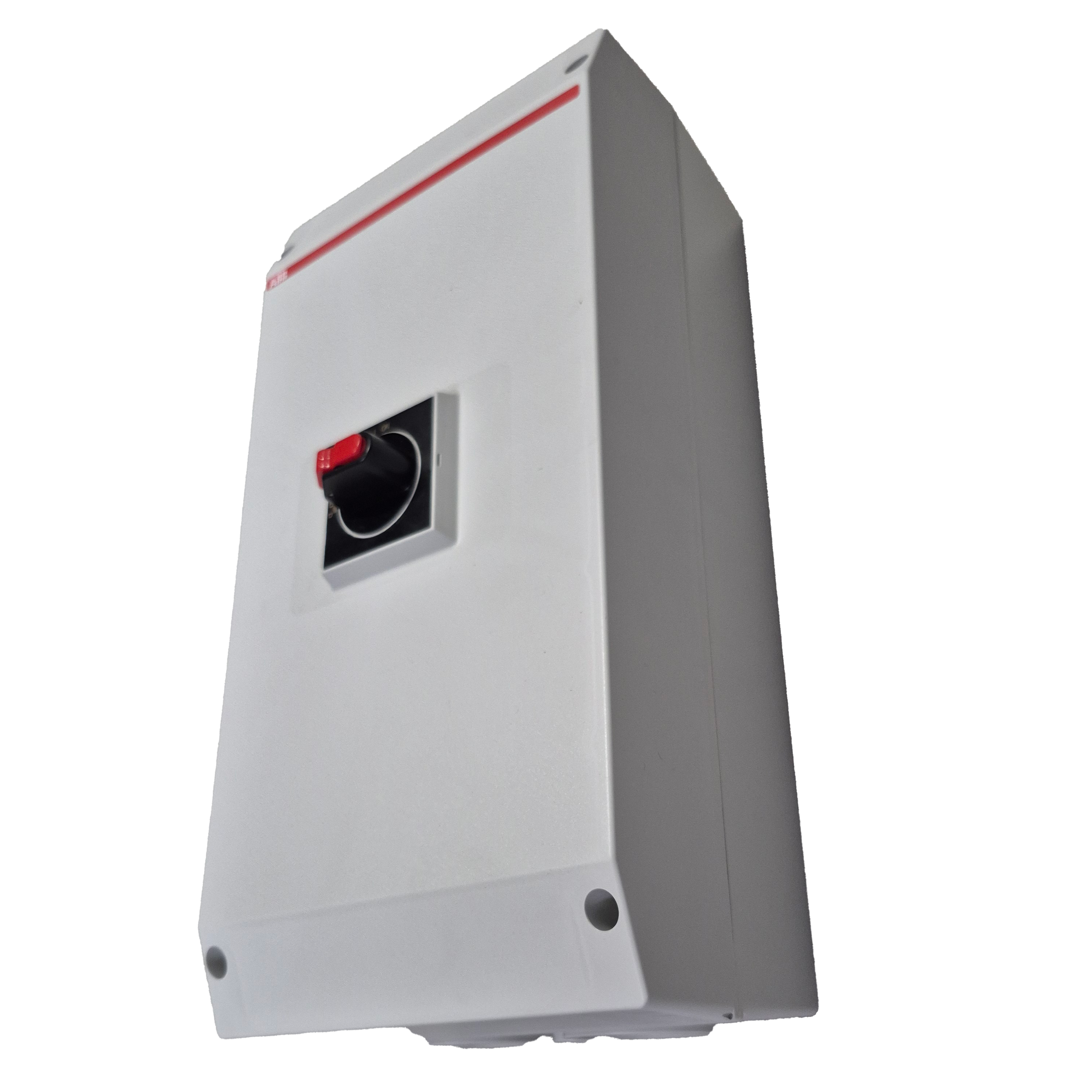 ABB AC frånskiljare OTP90T3M är en högkapacitets 3-polig brytare som möjliggör snabb och tydlig frånkoppling av AC-sidan i PV-anläggningar. Enheten lämpar sig som närbrytare vid växelriktaren och har låsbart manövervred för säker service och underhåll.