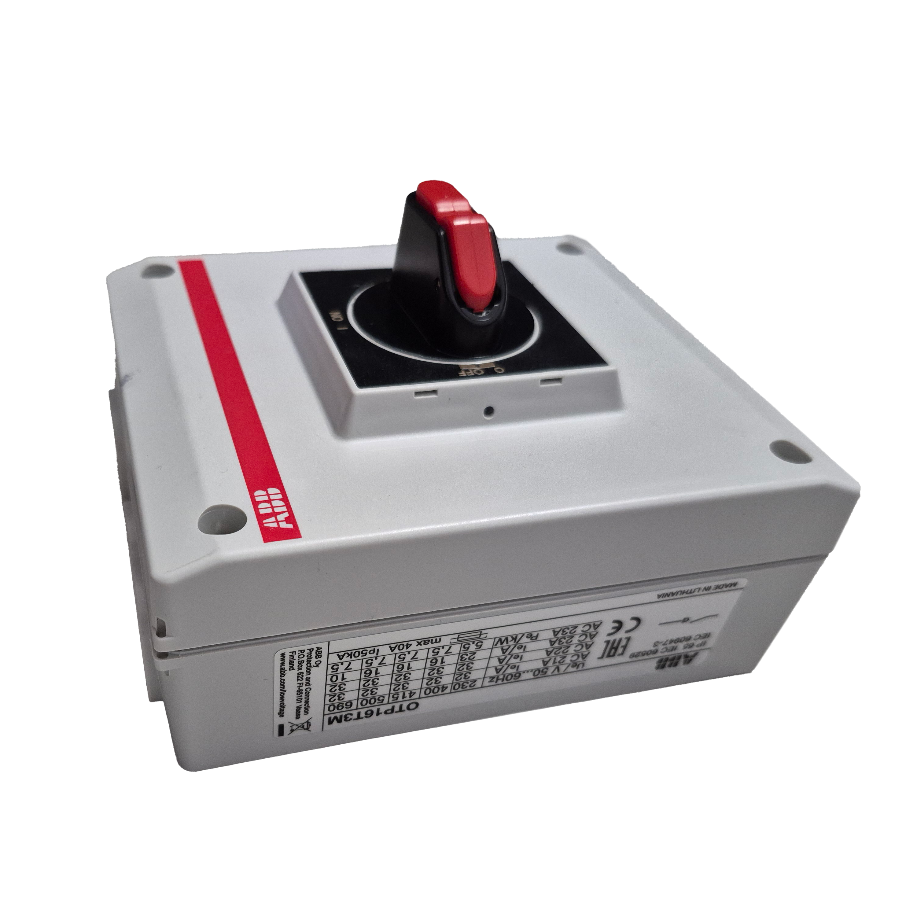 ABB AC frånskiljare OTP16T3M är en kompakt 3-polig brytare med hjälpkontakt (1NO) för säker frånkoppling på AC-sidan i PV-anläggningar. Lämplig som närbrytare vid växelriktaren och underlättar säker service och underhåll.