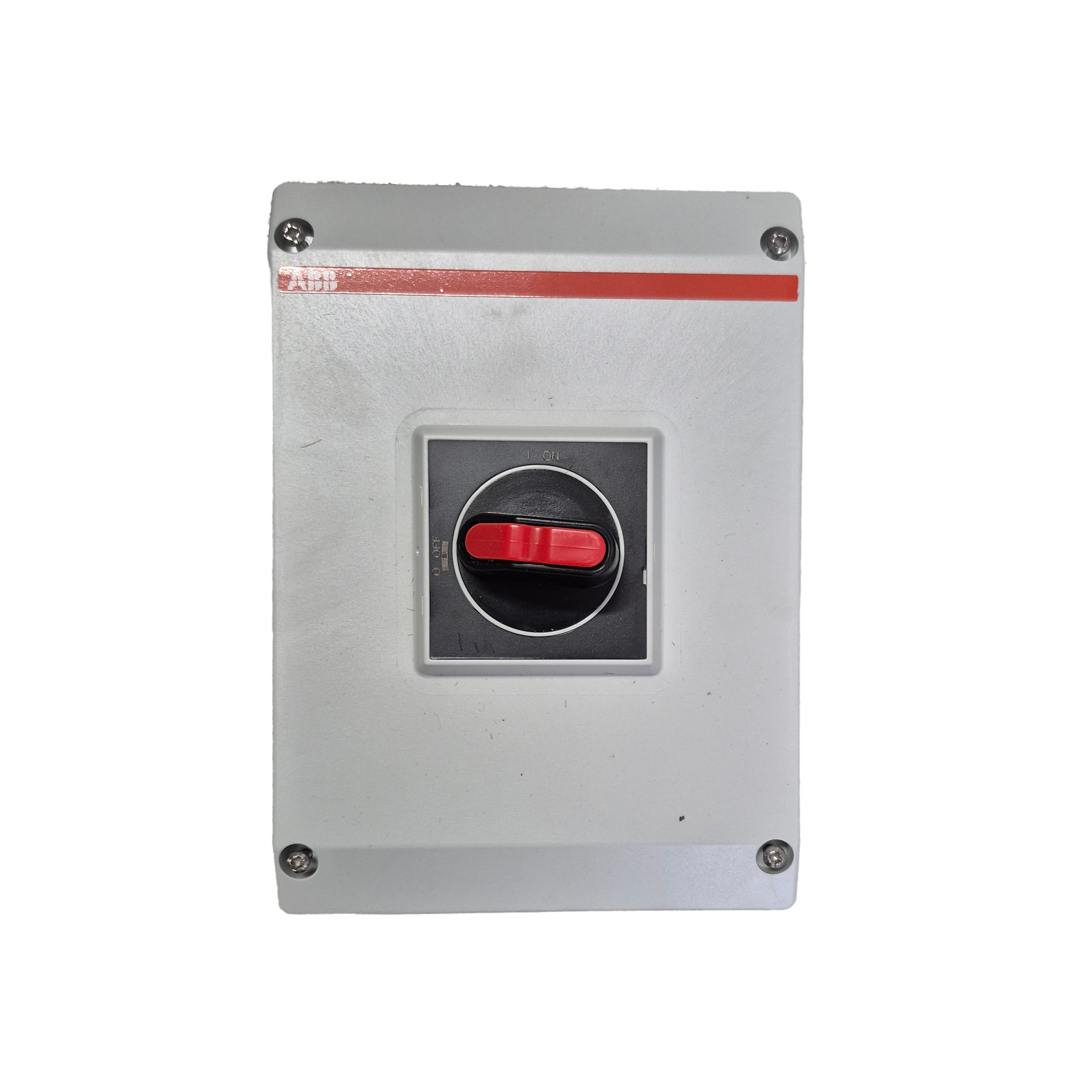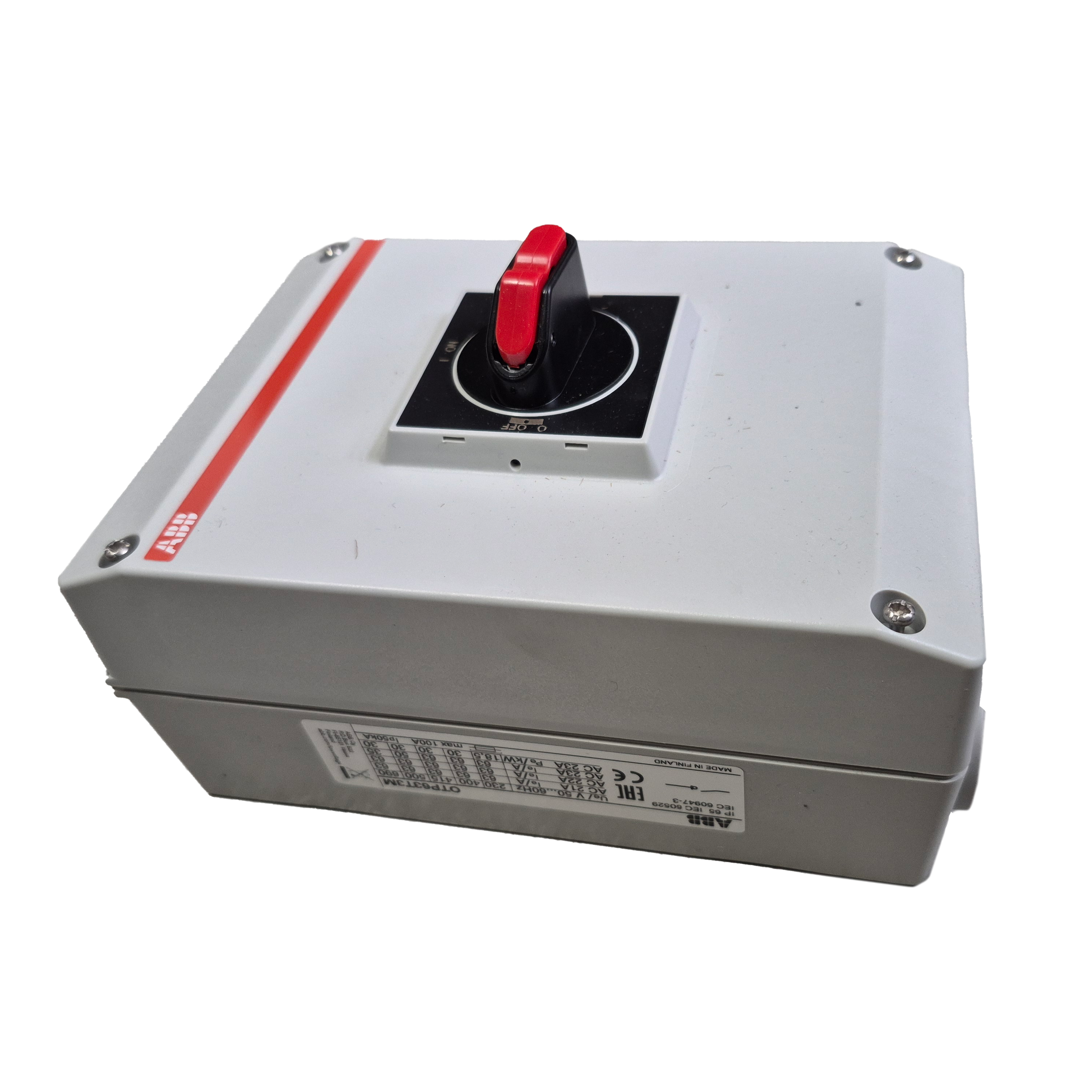 ABB OTP63T3M är en kompakt AC-säkerhetsbrytare för tillförlitlig, synlig frånkoppling på växelströmssidan av solcellsanläggningen. Enheten möjliggör säker service och underhåll genom att bryta matningen till växelriktaren. Kapslingsklass IP65 för krävande miljöer och låsbart vred för säker drift.