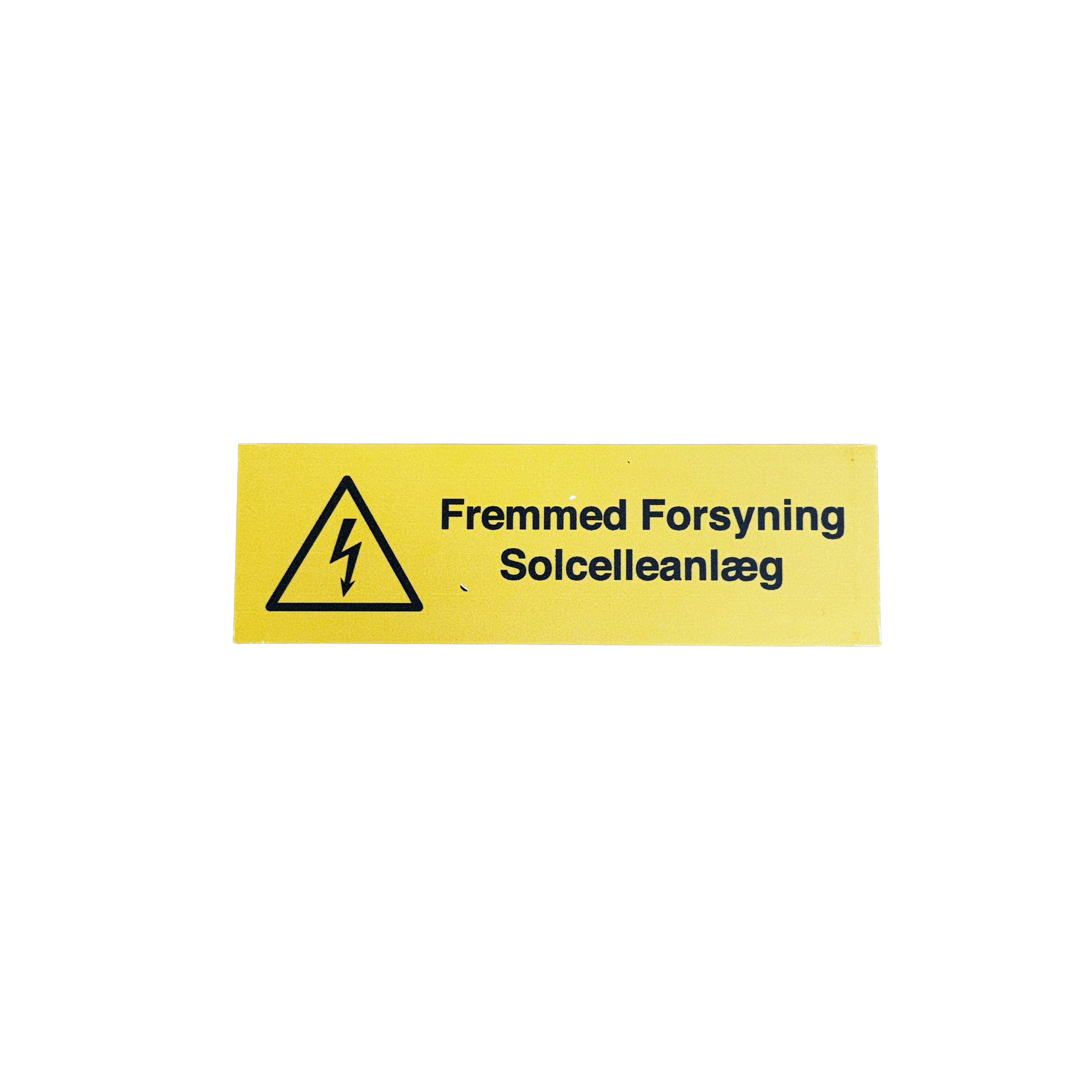 Professionell varningsskylt i solid metall för markering av främmande matning från solcellsanläggningar. Med måtten 50 x 155 mm och en tjocklek på 4 mm är denna skylt byggd för att motstå tuffa miljöer och mekaniskt slitage. Ett måste för en säker och korrekt B2B-installation där tydlig märkning krävs för räddningstjänst och servicetekniker.